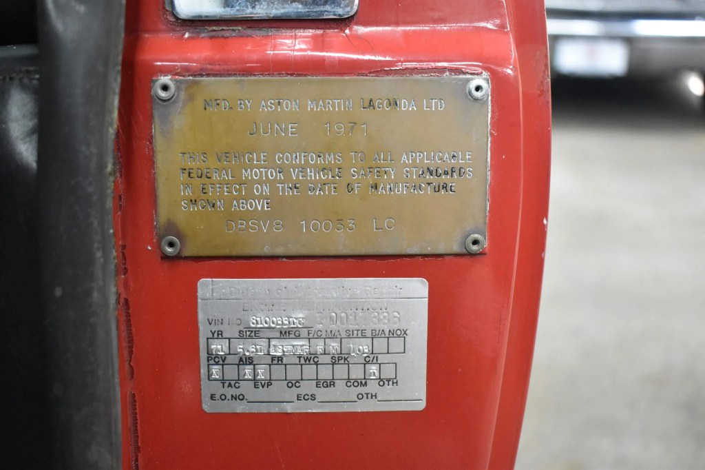 Chassis number:DBSV8/10033/LCEngine number: V/540/011/EEExterior colour: Fiesta RedInterior colour: BlackGearbox: automaticOptional fitment:Registration mark: Current registration: History: US emissions testing car.
